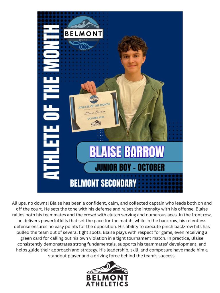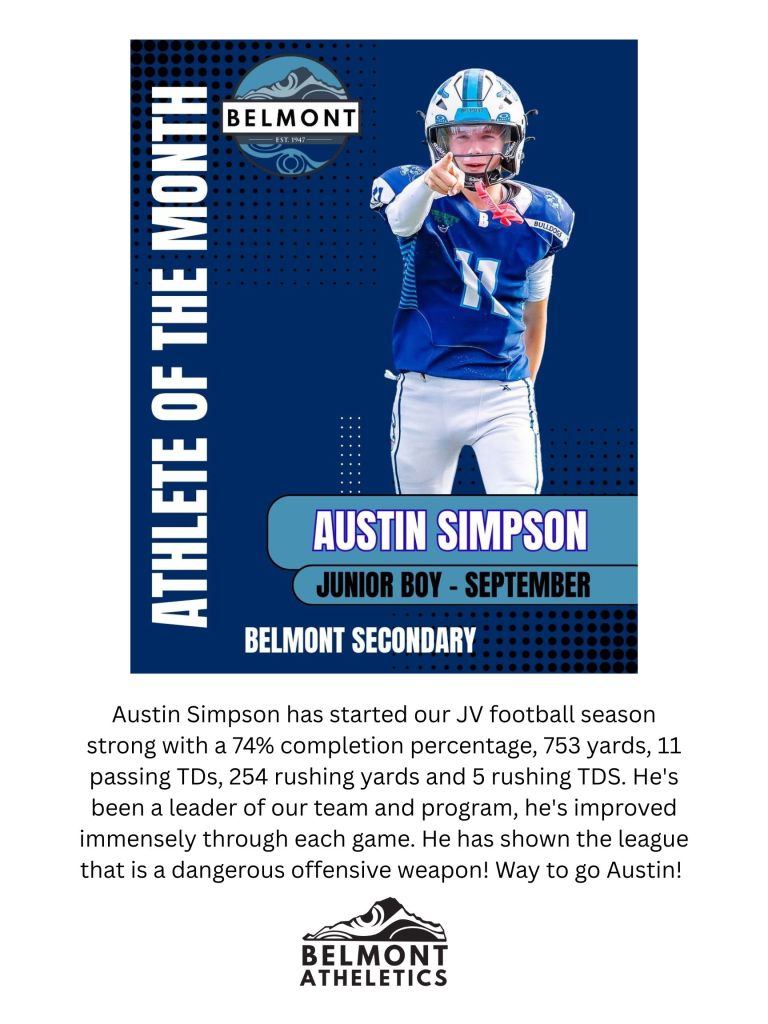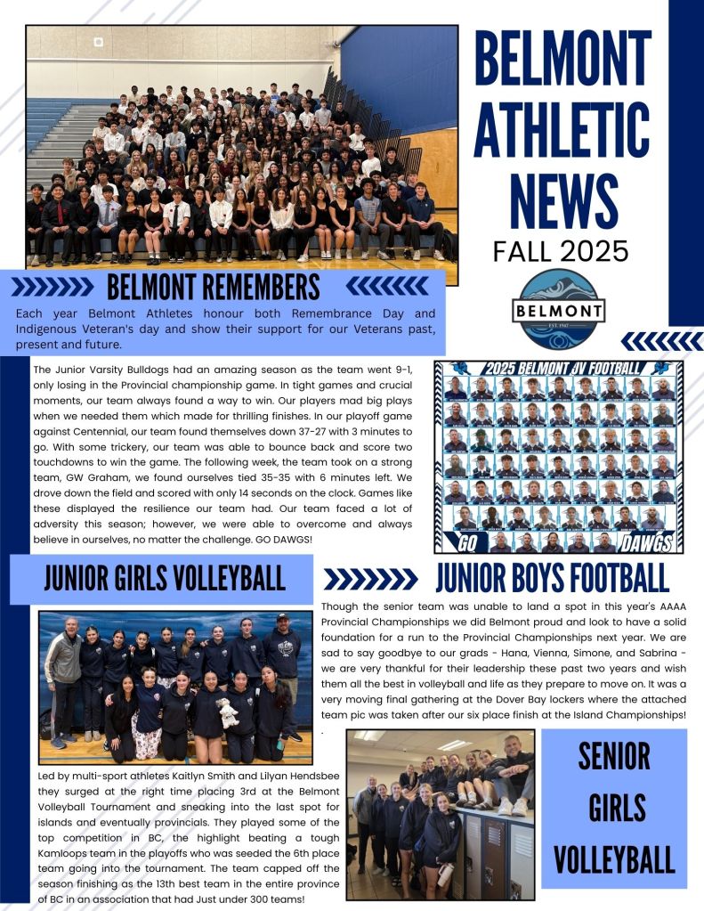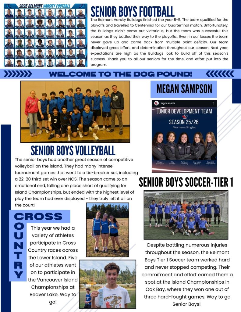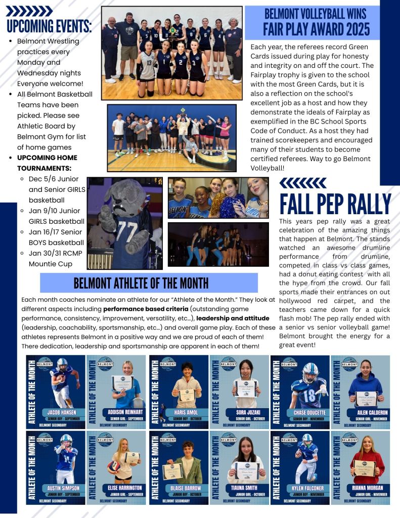 It’s been an amazing fall at Belmont! In addition to great learning, we’ve wrapped up the year with an incredible winter concert, fun spirit weeks, and so many great moments together. Our athletes excelled this fall season – from the Junior Varsity Bulldogs’ 9-1 football record to exciting volleyball performances and strong efforts in soccer and cross-country. They showed resilience, sportsmanship, and school pride, earning the Volleyball Fair Play Award and even national recognition through the NFL Canada Way to Play Award.