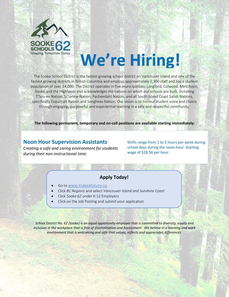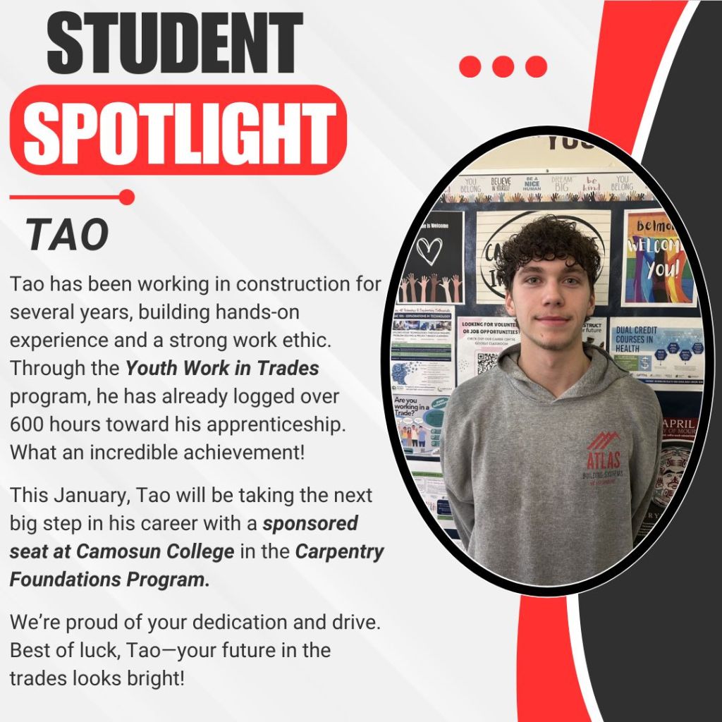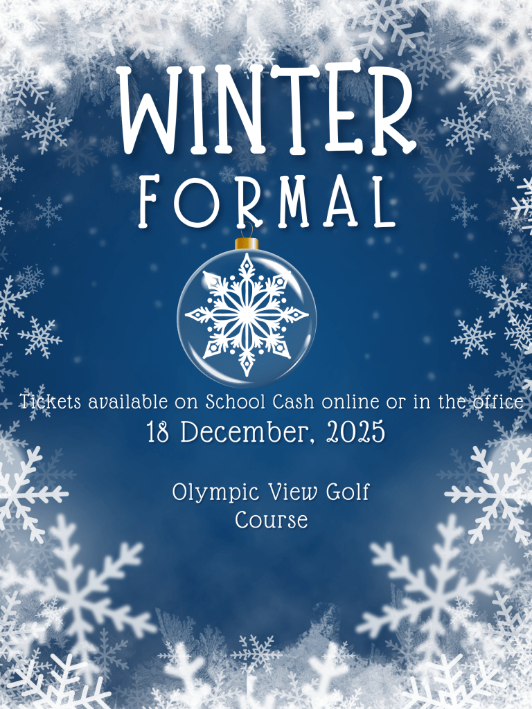 Winter Formal: The 2025 Winter Formal is taking place December 18th at Olympic View. Tickets can be purchased through Cash online or through the office at 90$, with sales opening November 14th, and closing December 15th. Stay tuned for more information following Grad assemblies.