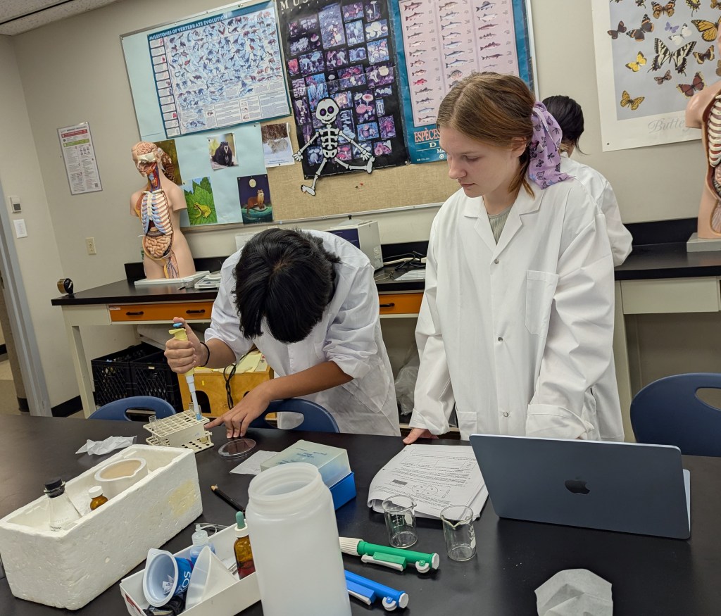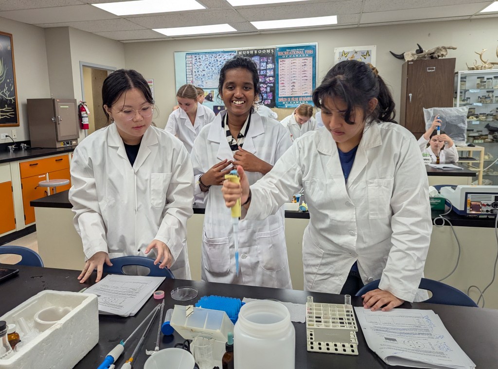 Dual Credit Anatomy and Physiology Students Explore Genetics Through Fruit Fly Lab Our Dual Credit Anatomy and Physiology 12 students, enrolled in Camosun College Physiology 126, recently took part in a fascinating laboratory investigation analyzing eye pigment in fruit flies (Drosophila). The lab focused on how mutations in specific proteins can alter pigment production pathways—giving students a hands-on look at genetics and molecular biology in action. Check out the photos of our budding scientists at work!