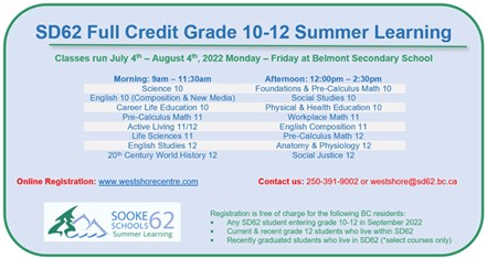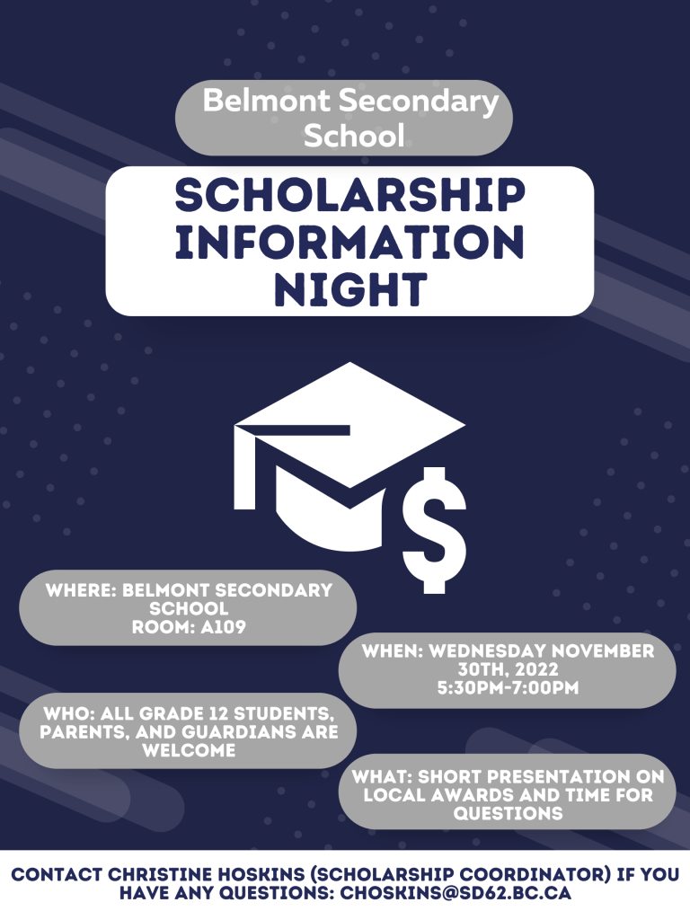 UVIC & Camosun College Info. Night Oct. 26th in the Belmont Theatre from 6:00-7:00 pm. Join us in the Learning Commons for our Parent/Guardian Student Information Evening.