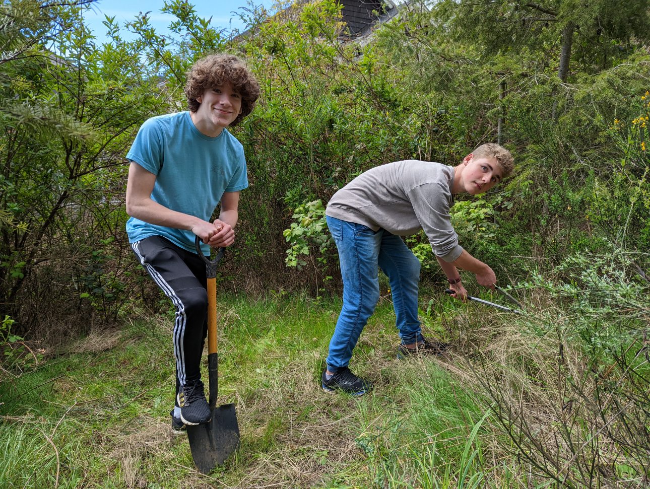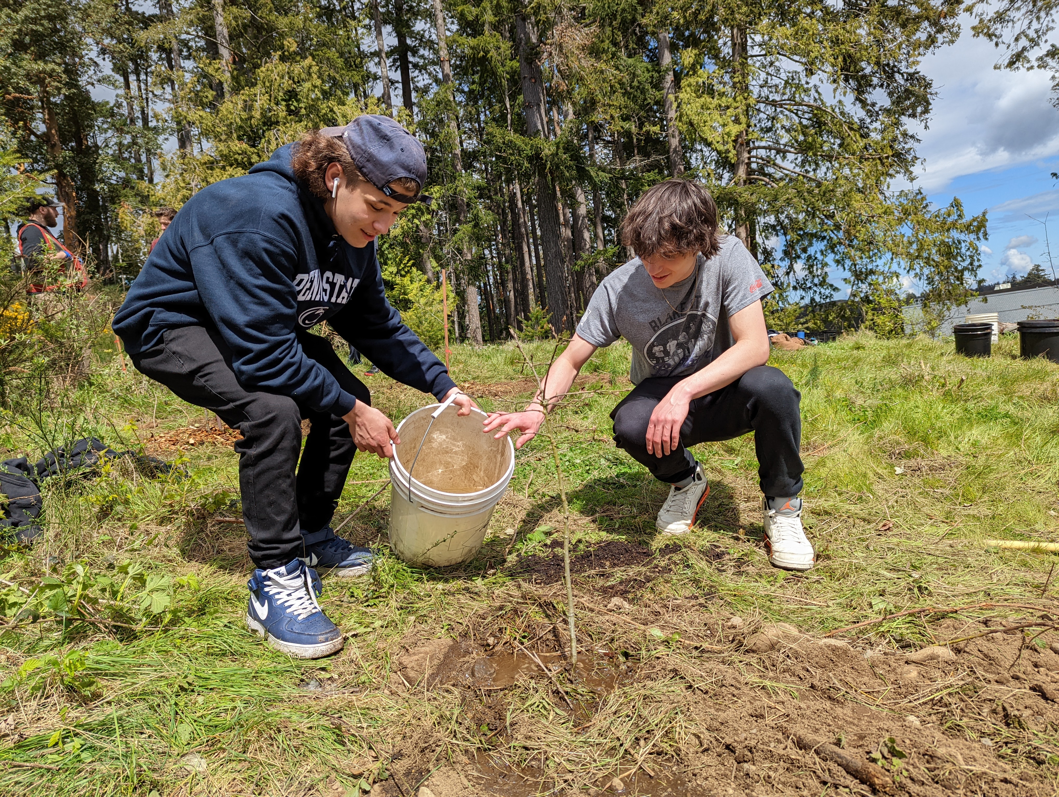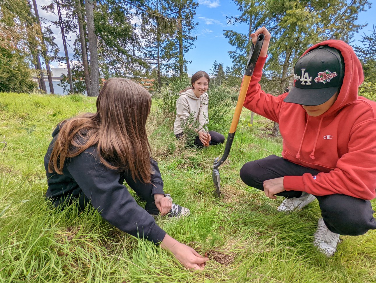 These are all our Belmont Outdoor Ed 9-12, Environmental Science 11, Social Justice 12 students. The educators that I have the privilege of partnering with are Megan Bondurant, Brechan Bird and Georgina Tran. We are all working hard to help educate and do action in support of all living things with the goal of creating biodiversity to sustain life. We spent the entire day today and removing invasive species and planting native trees donated by Langford Parks. Shelby Newcombe provided the expertise and support for our student to work hard all day long. We are all grateful for the donation of resources and time.